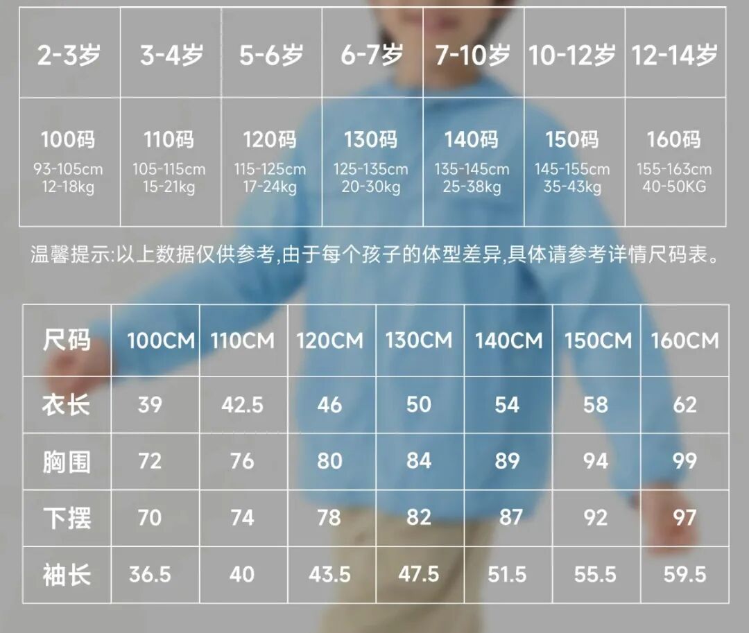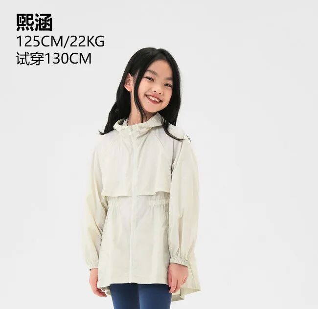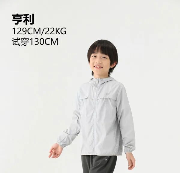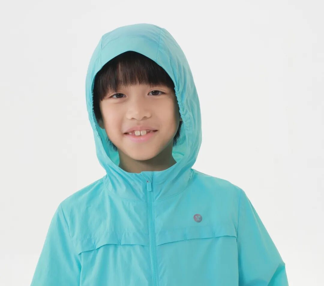 这款防晒衣,采用自研AeroMeshTM面料,具有防晒、轻薄透气、柔软微弹、凉感等特点,面料采用碱溶纱镂空技术,每件衣服40000+个透气网孔给孩子在炎热的夏季更加舒适的保护。基础款式设计,简单大方,微弹的面料可以适应多种户外轻量运动。面料更安全,通过A类婴幼儿纺织产品技术检测。尺码从120-160码,同时还有亲子款(160-180码),爸爸妈妈都能穿。模特身高178cm,150斤,试穿:L码