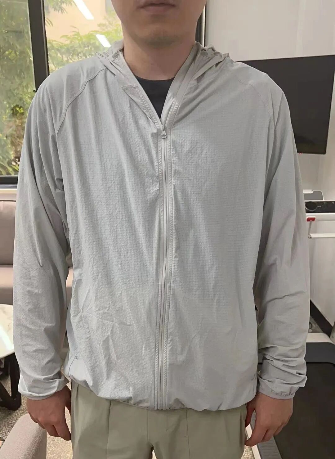 这次评测中,有个别防晒衣选择了手感丝滑的面料,出汗后,会粘在身体上,如果在这种时候,进入空调房,一冷一热,反而让人很不舒服。![]()