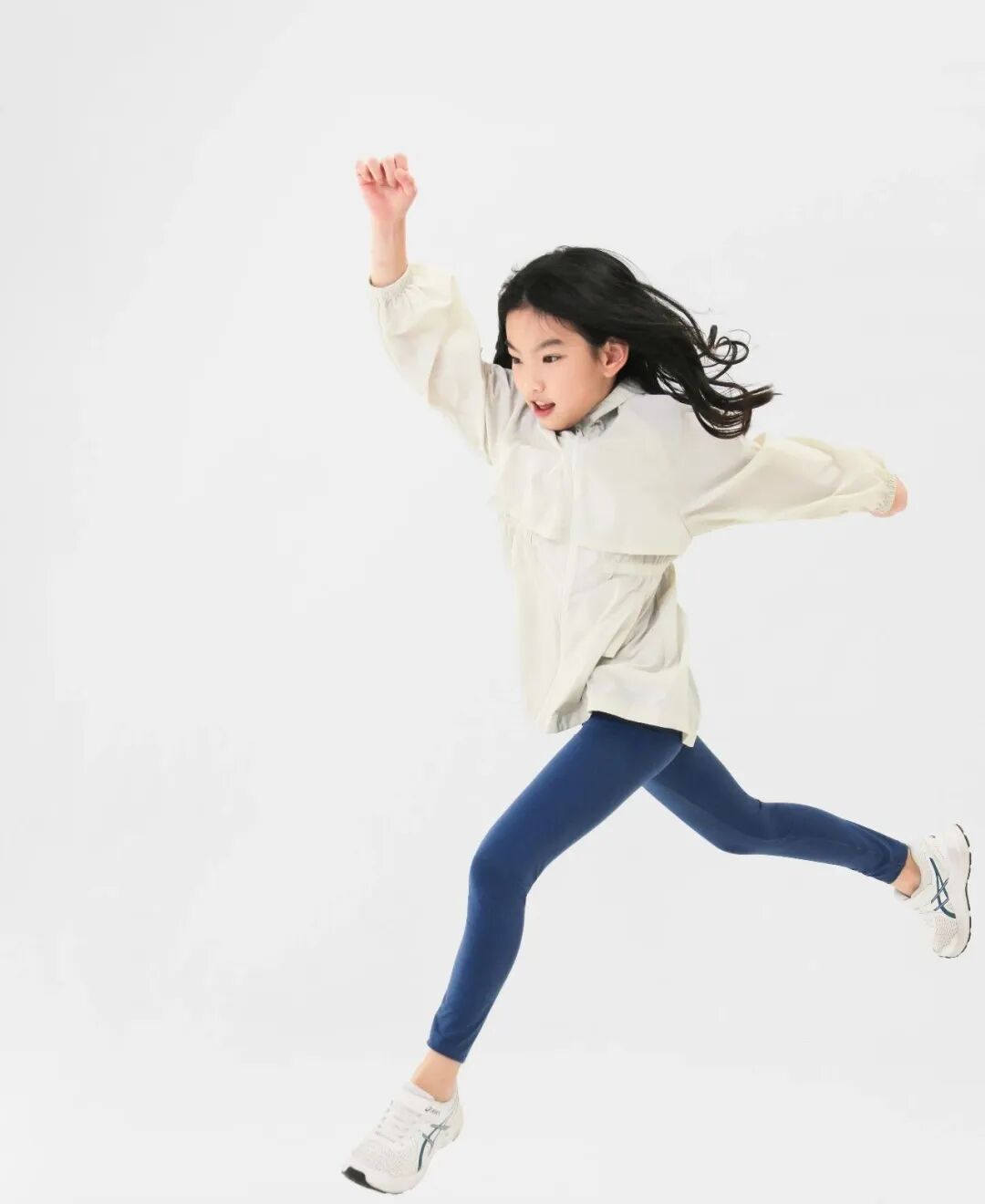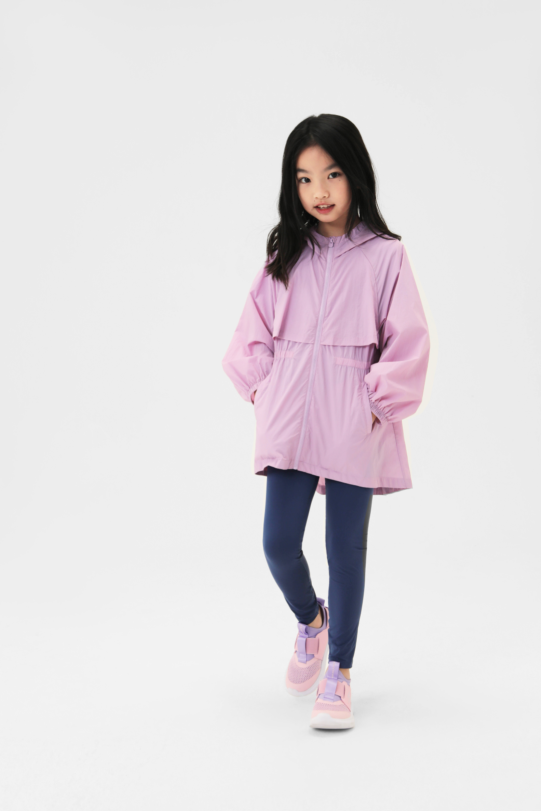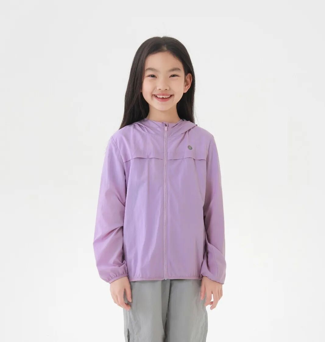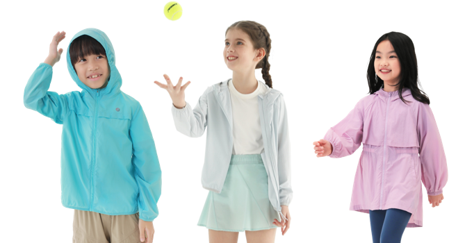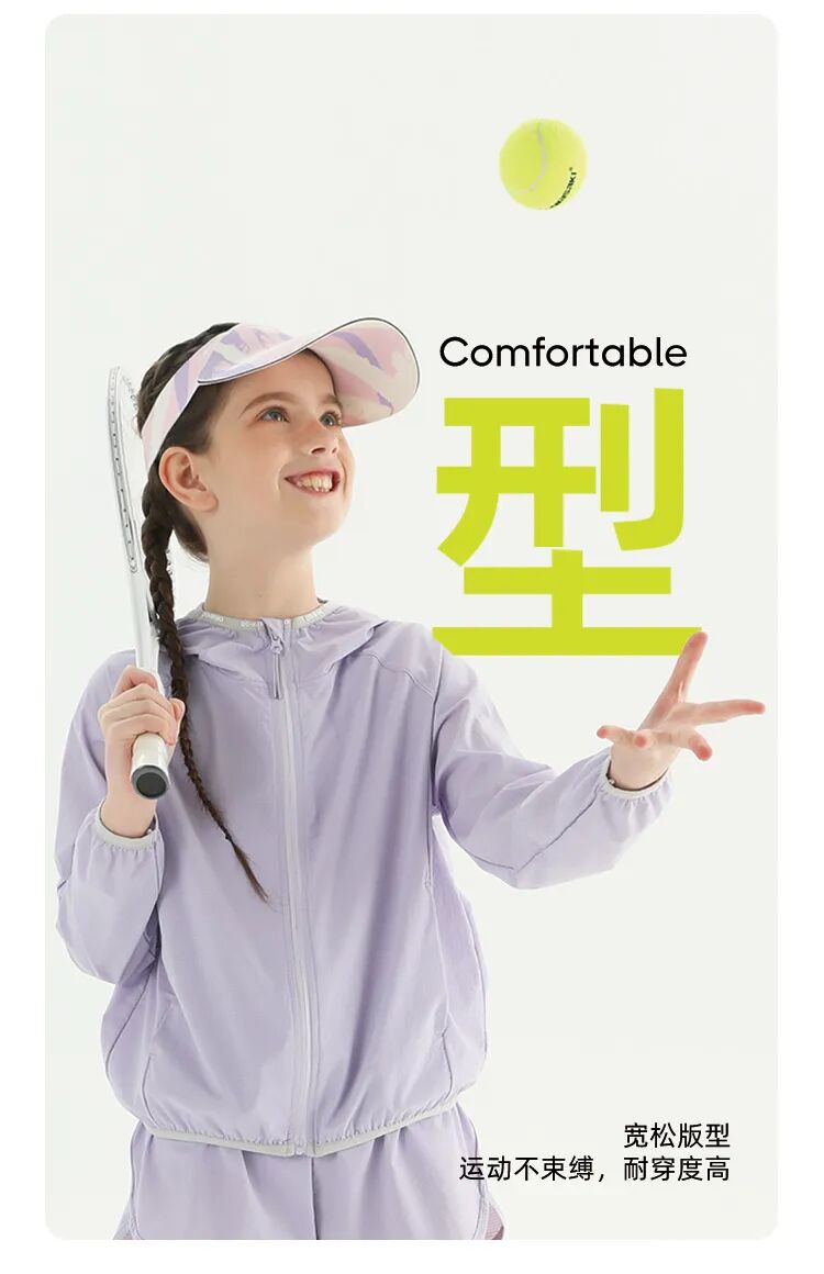 基础款属于男女同款,轻盈柔软的手感,腋下两侧和后背的透气设计增强排湿功能,让孩子不觉得闷热。女孩款的防晒衣官方为它定义为“闪亮铠甲”,设计为前短后长,让女孩穿着瑜伽裤或打底裤时,更加放心无负担。背后的透气孔设计以及收腰的款式,保证孩子们要美丽,又要凉爽的需求。