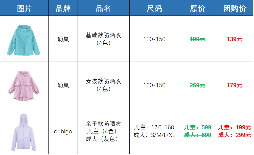 从公众号刚成立的时候,我们就开始为大家普及防晒知识,7、8年前开始推荐适合不同年龄、不同场合的防晒帽、太阳镜等防晒装备。近几年,有不少同学在后台留言希望我们能推荐防晒衣产品。其实几年前,我们已经开始考虑这个品类,当时没有开团的原因,主要是因为市面上的防晒衣产品一直都比较丰富,不像婴幼儿太阳镜或者防晒帽,当初都是“稀罕”的产品。既然选择比较多,大家可以根据个人的需求来购买,因此一直也没有团购的急迫性。不过这几年一直都有不少读者问什么时候开团,更多的人则咨询到底怎样选择防晒衣。的确,随着防晒衣的款式品类越来越多,UPF50+这些防晒指数已经被说烂了,在目前的防晒衣产品市场,防晒性只是基础,而不是选择的关键。所以我们今年决定在夏至这天,第一次团一下防晒衣,并且跟大家聊聊,什么才是选择防晒衣的核心标准。UPF防晒指数只是基础,我们在选择的时候,只要选择比较知名的品牌,基本不太可能在防晒性上出问题。而我们需要更关注的,其实是衣服的轻薄和透气属性,这样的防晒衣不仅方便携带,还能让孩子活动自如,更重要的是,可以让孩子更舒服,愿意穿,穿得住。为了准备今年的防晒衣团购,我们收集了多家儿童服饰品牌,多达数十件的防晒衣。包含各种面料、各种款式,并且都提供了通过防紫外线性能检测的报告。![]()