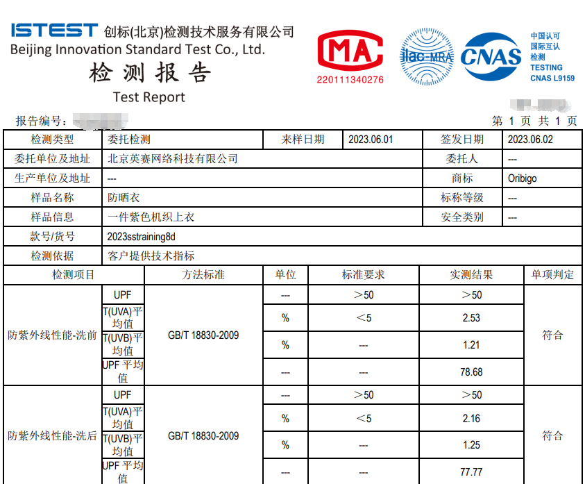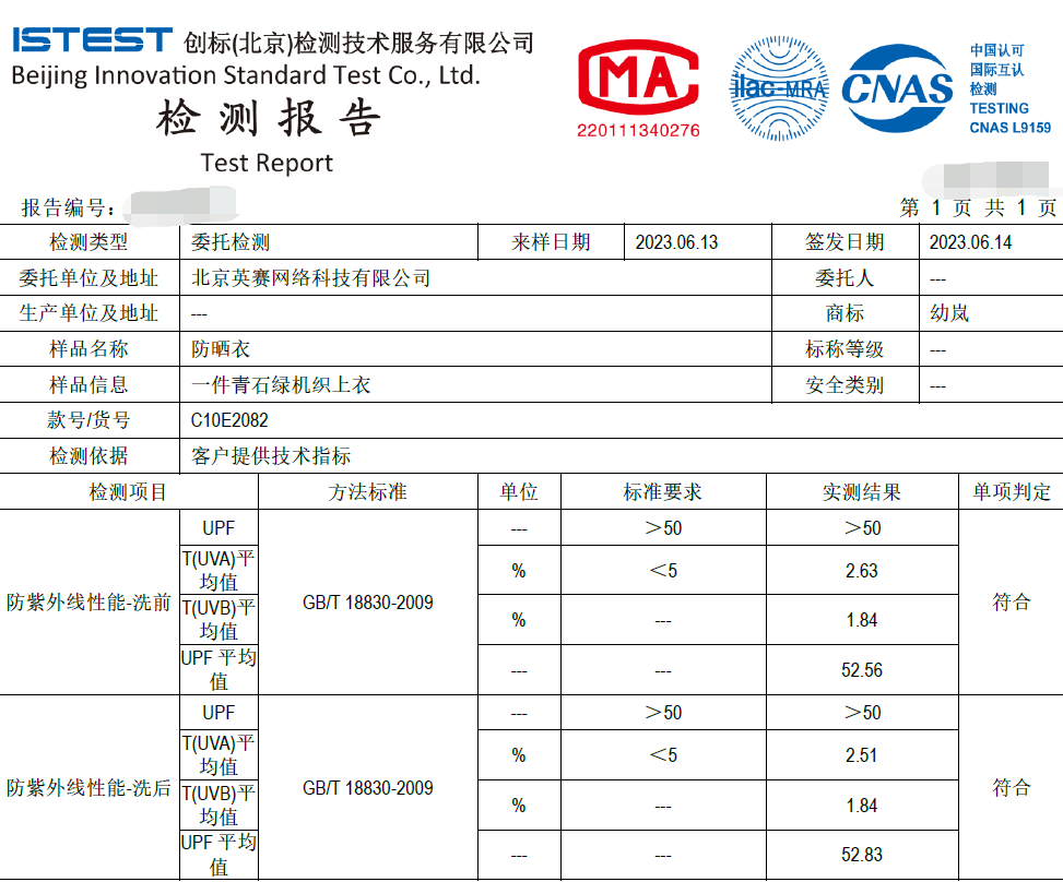 作为开团这类功能性产品的传统,虽然品牌都提供了合格报告,我们还是要自己将准备推荐的3个产品都送去第三方专业检测机构,进行防紫外线能力的检测,结果均为合格,这才会安心。![]()