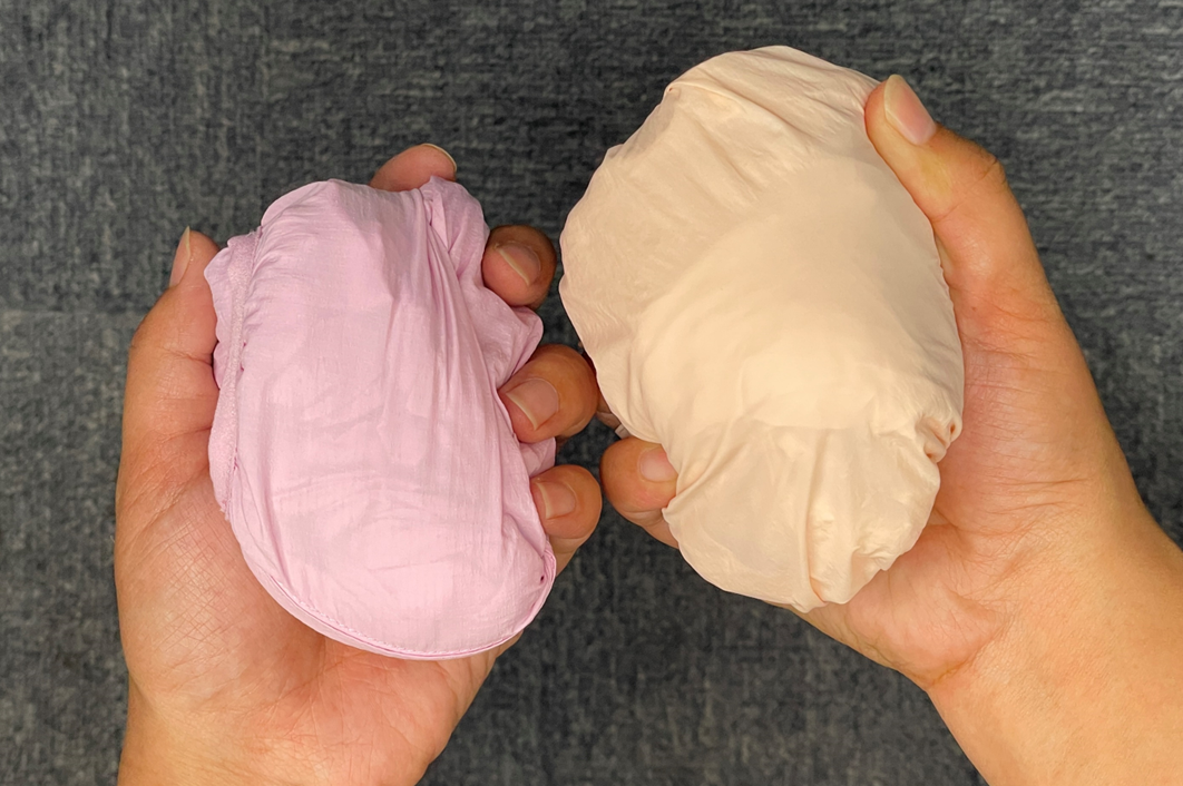 下图是幼岚两款防晒服卷起收纳的大小,左边是基础款防晒服,右边是女孩款防晒服。![]()