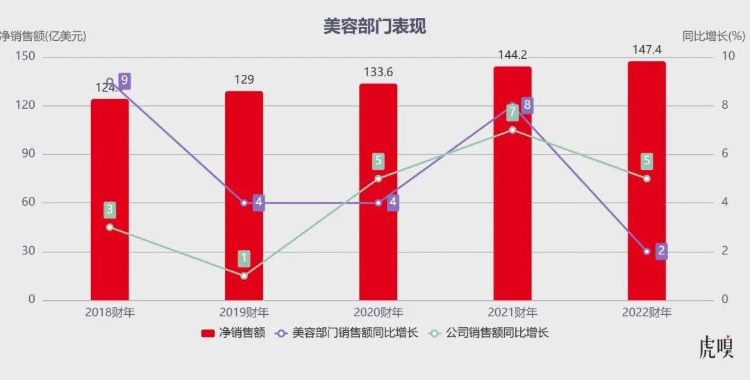 因为销量不佳,SK-II已经被宝洁“点名”了一整年。按照品类不同,宝洁分为5大业务板块:美容、洗漱、健康护理、织物及家居护理、婴幼儿及家庭护理。其中,SK-II、玉兰油以及海飞丝、潘婷都属于美容板块。这五大业务板块中,织物及家居护理规模最大,2022财年,其营收占比为35%;美容业务是宝洁的第三大业务,2022财年净销售额接近150亿美元,约占宝洁总营收的五分之一。稍微拉成时间线我们会发现,这两年,SK-II所属的美容部门正从原来宝洁内部的“优等生”,慢慢变成了“拖后腿”的。2022财年以前,美容部门的净销售额增速基本要高于宝洁销售额增速,2022财年,美容部门净销售额增速却比公司销售额增速低了3个百分点。2023财年,美容部门“颓势”继续:净销售额增速还是比整个公司低。单看宝洁美容部门,其有机销量已经连续五季度下滑或维持不变。美容部门的业绩不振,SK-II要负很大一部分责任。从2022财年Q4到2023财年Q3(虎嗅注:也就是2022年4月初到2023年3月末),宝洁一直在财报里表示,美容部门的增长,部分被SK-II销量下滑抵消。要知道,SK-II可是宝洁的明星品牌。眼下这种失落的滋味,SK-II已经很多年没有尝到过了。上世纪末,宝洁把SK-II推向中国市场,据当时的媒体报道,之后几年这个品牌一度成了我国高端化妆品领域的领导者。虽然本世纪初开始,SK-II在我国市场上也遇到了多次风波,但最后还是得以平稳度过,在高端化妆品市场占据一席之地。宝洁集团对SK-II也很是重视。2015年,由于多季度业绩低迷,宝洁进行了业务调整,一下子砍掉了100多个品牌。SK-II所属的美容部门,宝洁一下子出售了40多个品牌,其中不乏蜜丝佛陀这样的知名彩妆品牌;Gucci、杜嘉班纳等奢侈品牌的香水代理权也被宝洁抛弃了。2015年调整之后,宝洁在美容部门只留下了两个核心面部护理品牌——SK-II和Olay。此后,宝洁更是将资源向这两个头部品牌倾斜。前几年,SK-II的表现也没让宝洁失望。2018财年年报里,宝洁提到,SK-II已经连续十五个季度销售额增速超过20%;2018财年,其销售额更是增长了30%。国泰君安研报中的数据显示,2021年SK-II全球零售额为23亿美元,其中光是中国市场就有71亿元。业绩增速快、规模大还不够,作为高端化妆品品牌,SK-II的赚钱能力也不容小觑。虽然宝洁没有公开SK-II的毛利率,不过某国产中高端化妆品品牌的毛利率都在65%左右,SK-II的毛利率大概率更高。作为叱咤我国高端化妆品圈里多年的“老将”,SK-II这两年为何走上了下坡路呢?