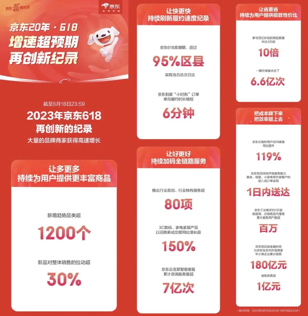 6月18日,是京东的“生日”,也是京东一年一度的618大促日。伴随着618逐渐落下帷幕,京东也交出了618成绩单。增长仍在继续。数据显示,京东618期间,超800个3C数码品牌企业客户成交额同比增长超100%;6月17日晚8点,京东618的高潮期开启,短短10分钟内,30%国产品牌成交额同比增长100%;6月13日京东超级新品日当天,新品成交额同比增长超过30%,有近100个品牌销售同比增长超过了100%。在商家方面,今年618,京东线上品牌商家、线下实体门店参与数量均创新高,线下数万家的京东门店、京东供应链接入的全国数百万家线下合作门店,都参与到京东618中,京东到家联动超38万家线下门店通过线上下单、门店发货、商品小时达最快分钟达。![]()