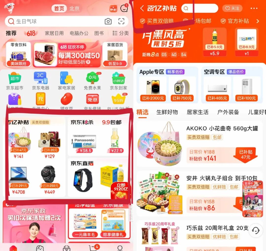 如何实现“35711”梦想,京东描绘了路线图,其中提出了贯彻下沉市场、技术服务、国际业务三大战略。在下沉市场,京东表示,将聚焦“极致低价”和“丰富供给侧”发力。许冉也提及,“多、快、好、省”是京东的不懈追求,服务更多用户是京东奋斗的方向,“未来一段时期,我们将重点围绕‘省’和‘多’,通过低价进一步触达广泛的下沉市场增量用户。”近期,京东也在围绕低价下功夫。2022年底,京东创始人刘强东在京东零售的一场内部会议中指出,“低价是京东过去成功最重要的武器,以后也是唯一基础性武器。”在低价战略下,2023年3月,京东 “百亿补贴”正式上线。如今在京东APP首页,“百亿补贴”和“京东秒杀”“9.9包邮”占据了显著位置。这个618,京东也在低价上做足了功夫。5月22日,京东618启动会上,京东零售CEO辛利军表示,今年的京东618会是全行业投入力度最大的一次618。在价格设置上,今年京东618补贴力度远超以往,在全场商品价格直降的基础之上,还有“满200-30元”的额外补贴券。数据显示,今年京东618期间,参与百亿补贴的商品数量是3月的10倍以上,“一键价保”被点击了超过6.6亿次。价格是吸引消费者的利器,618期间就有消费者向燃次元表示,“哪里便宜在哪里买。”在社交平台上,也有用户直言,“蹲了两个月,靠京东618百亿补贴5900元拿下佳能R50台版。”![]()