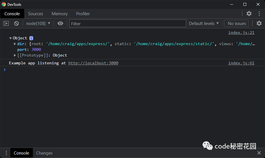 --enable-source-maps:在使用 TypeScript 等转译器时启用 SourceMap--throw-deprecation: 使用不推荐使用的功能时抛出错误--inspect:激活 V8 Inspector(请参阅下面的 Node.js V8 Inspector 部分)。调试应用程序最简单的方法就是在执行期间将值输出到控制台: