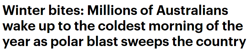 《每日邮报》6月21日报道称,澳洲各地气温骤降至平均水平以下,气象学家警告称,创纪录的低温可能会在本周剩余时间内持续下去。