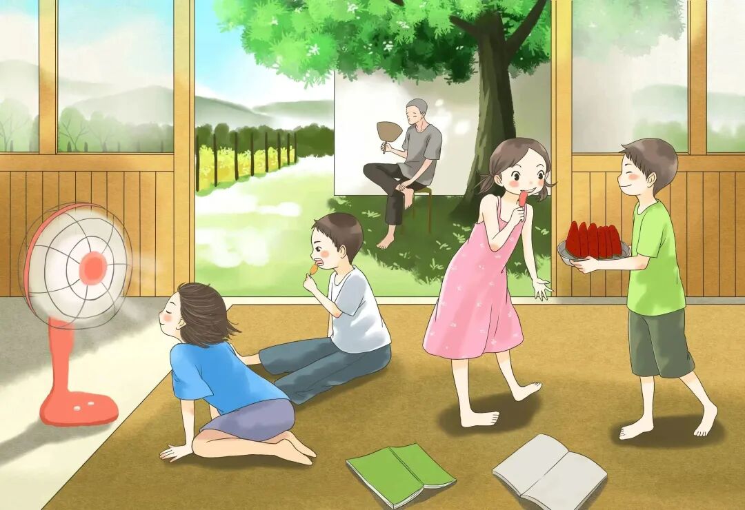 雨过晚风拂的夏夜,院子里放置着一把上了年纪的竹摇椅,孩子围坐在石桌旁,等待长辈捞起在凉凉的溪水里泡了一天的水果——绿皮红瓤的西瓜,一刀下去,清脆有声,弄得心里都是凉滋滋的,手上、脸上、衣服上沾满鲜红的西瓜汁。