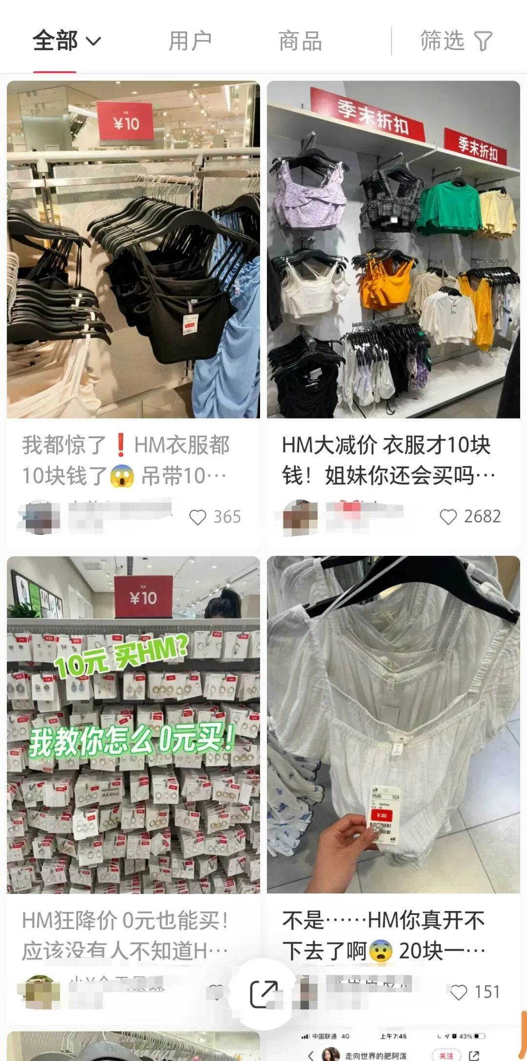 来源:社交媒体截图但也有网友吐槽,“5元10元也不买,这几年H&M的质量越来越差了”。据上海市市场监督管理局公告,H&M(即:海恩斯莫里斯(上海)商业有限公司)因生产、销售不合格产品,被黄浦区市场监督管理局罚款31.9万余元、没收违法所得16万余元。事实上,H&M因质量问题被处罚的情况并非个例,近年来几乎每隔一段时间就能看到类似的消息。据大众报业·海报新闻报道,中国商业联合会专家委员会委员赖阳表示,品牌如果打性价比之战,则会越打越残酷。作为有大量实体店的连锁企业,如果都是低价策略,盈利能力就会比较弱。所以通过走中高端路线提升产品附加价值,有助于品牌维持增长。近几年,从最早的美国快时尚品牌Forever 21、GAP,到瑞典品牌H&M和西班牙品牌Mango,外资快时尚品牌相继收缩在中国的业务规模,纷纷撤离繁华商业圈。“2021年的新疆棉事件,是H&M在中国市场下滑的转折点。但是核心因素是中国消费者们变了,快时尚的受众人群是二三十岁的年轻消费者们,而中国新一代年轻消费者们文化自信心更强,不盲目崇拜国外的这些洋品牌导致快时尚不再受到新一代消费者们青睐。再加上很多国际大品牌在国内整个摊子铺得比较大,之前受到疫情影响很难及时调整。”北京社科院研究员王鹏对《中国经济周刊》记者表示。从2022年618开始,根据各大电商平台的数据,Urban Revivo、波司登、安踏、太平鸟等为代表的一大批国产品牌成为销售前十名的榜单常客,而且在电子商务、数字化营销、直播带货、网红营销等方面都远远优于国际快时尚品牌的布局,目前外资快时尚与本土品牌的竞争进入一个新阶段。来 源 | 都市快报、时代财经、大众报业·海报新闻、中国新闻周刊