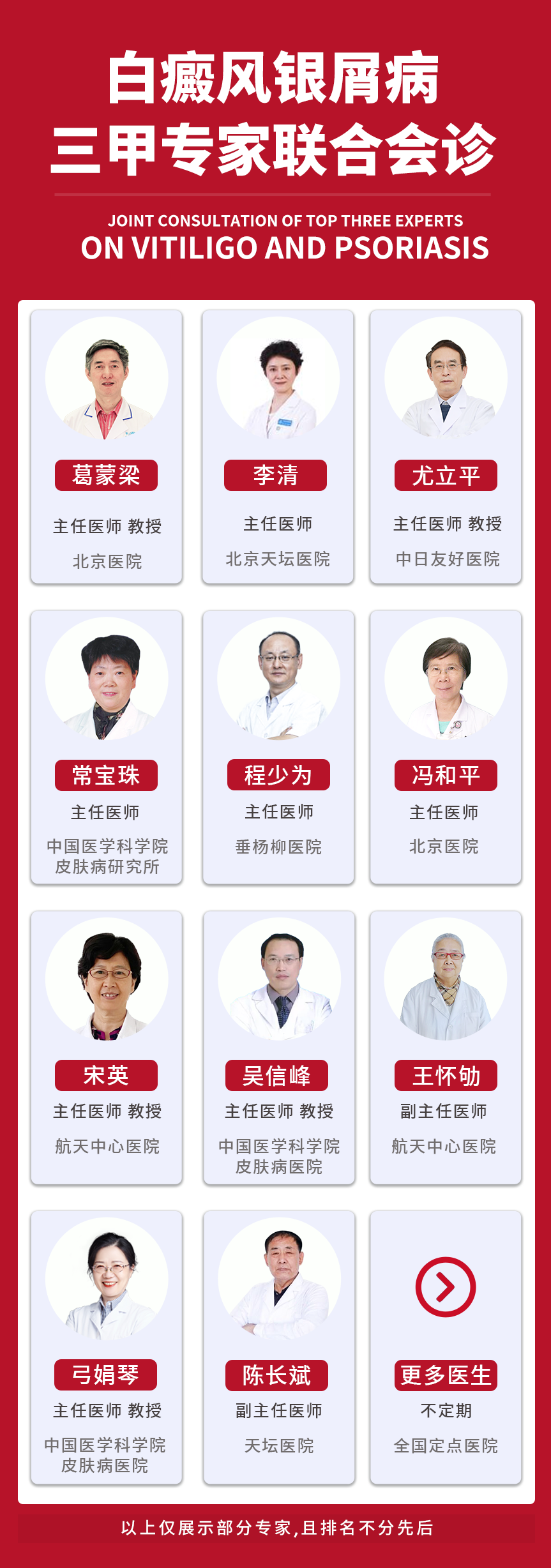 此次公益援助,全国不定期开展北上广三甲白癜风银屑病名医进行联合会诊,为患者提供白癜风银屑病优质诊疗服务体验。