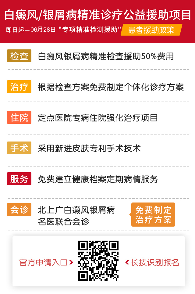 关爱白癜风/银屑病患者,切实帮助患者规范诊疗、减轻经济负担。本次公益援助仅针对白癜风(白斑)/银屑病(牛皮癣)患者且不限年龄段。