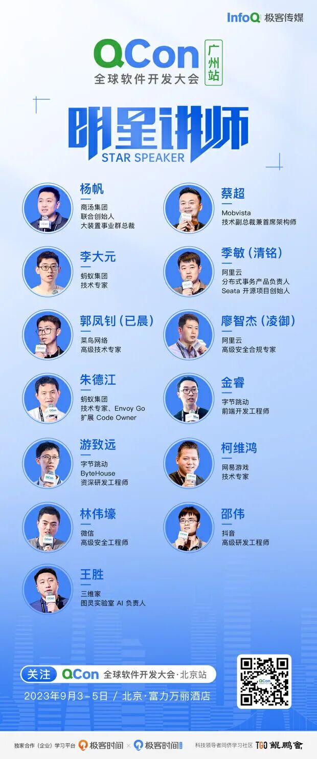 QCon 全球软件开发大会·北京站 将以「启航·AIGC 软件工程变革」为主题,于 9 月 3-5 日在北京•富力万丽酒店举办,此次大会策划了大模型应用落地、LLMOps、AIGC 浪潮下的研发效能提升、异构算力、微服务架构治理、业务安全技术、面向 AI 的存储、构建未来软件的编程语言、FinOps 等方向。本次大会参与 6.18 QCon & ArchSummit 知识蓄能季优惠活动,扫码可咨询详细购票政策。