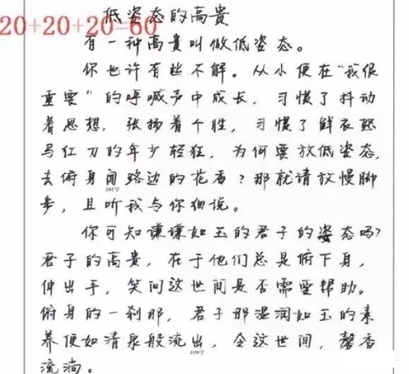 无论你作文写得多好,只要字体卷面差,你绝对过不了45分(满分60)。