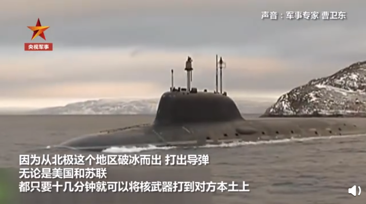 尼古拉说,俄罗斯的三艘战略导弹核潜艇,在北极完成了一个同时破冰上浮的军事演习,破冰厚度1.5米,而且三艘潜艇在一个不到300米的范围内同时上浮。