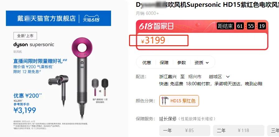 给大家直观看下普通吹风机和这款吹风机吹完头发后不同效果普通吹风机吹过的头发,有参差不齐的分叉;大宇HD04高速吹风机吹过的头发,健康无明显损伤!除此之外,还有高清可视化显屏设计,温度风速状态一目了然而且非常便携,吹头发一点也不累手哦,蕞重要的还是无叶设计,安全性真的很高关键只要戴*十分之一的价格,仅仅只需要369!!!而其他高速吹风机的价格都很高(关键性能完全不如大宇HD04高速吹风机)