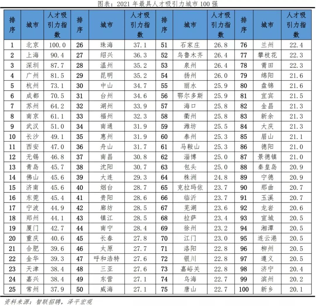 最近,泽平宏观发布了2021年最具人才吸引力城市100强榜单,扬州人才吸引力排名54,与前两年相比,数据排名下降了15位。