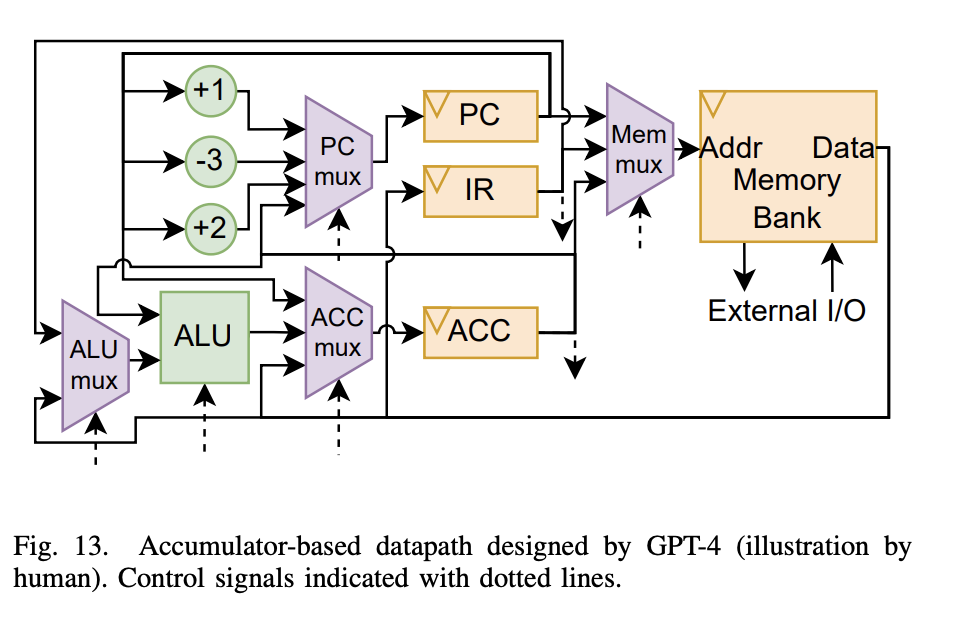 为了探索 LLM 的潜力,研究人员还让硬件设计工程师和 ChatGPT-4 配对,共同设计一种基于 8 位的累加器的微处理器。