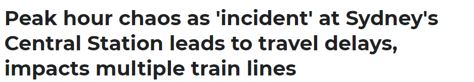 Sydney Trains在其推特上表示:“由于中央车站发生了一起需要紧急救援的事件,请旅客预留出额外的通行时间。”