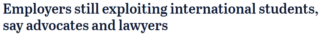 《时代报》6月21日报道称,代表国际学生的倡导者和法律专家表示,澳洲雇主仍然经常剥削海外工人。