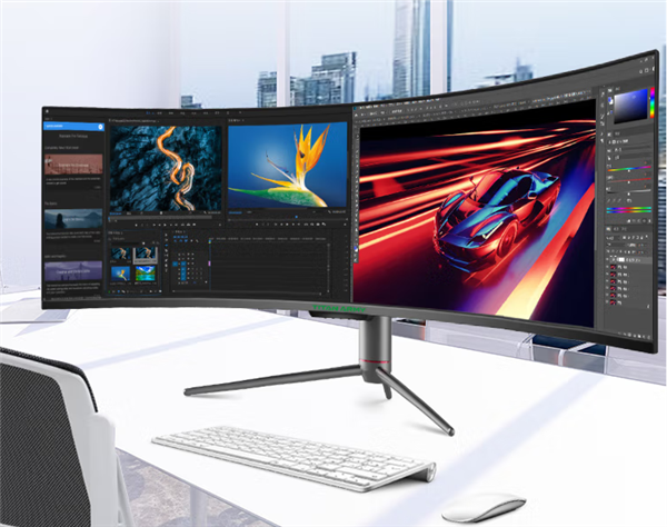 据其所述,这是泰坦军团的显示器,从尺寸来看,或许是泰坦军团C49SH。这款屏幕具有49英寸超大屏,32:9超宽比例,分辨率3840x1080,还有1800R曲率。