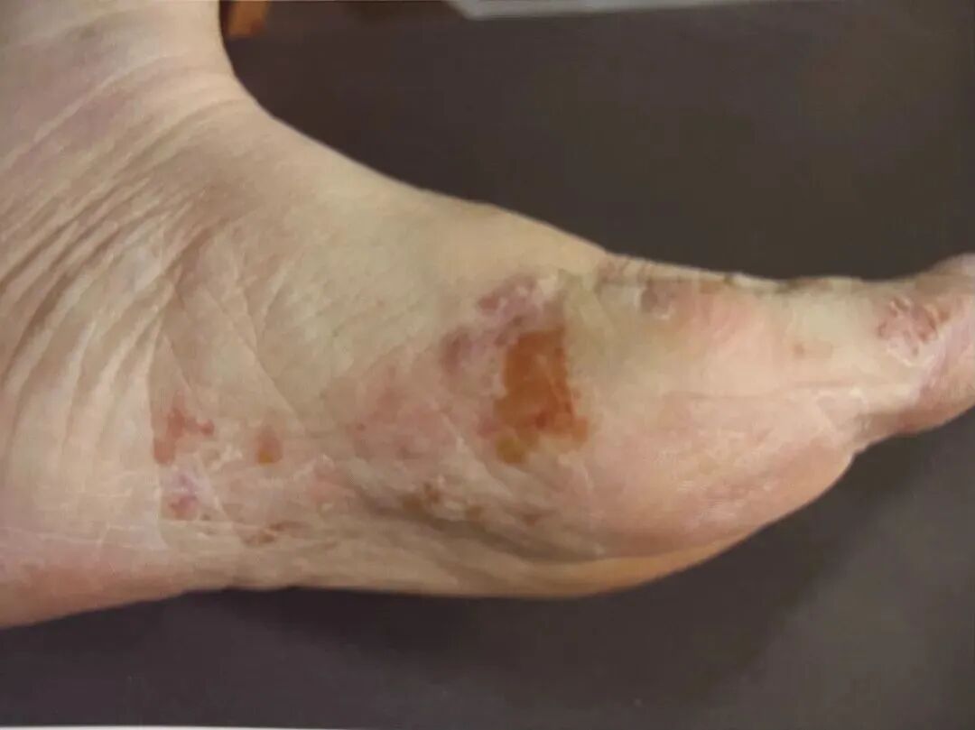 足癣:发生于足趾间、足跖、足跟、足侧缘等部位。