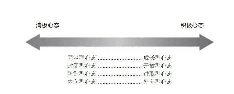 与此对应的,4种积极心态是:成长型心态、开放型心态、进取型心态、外向型心态。