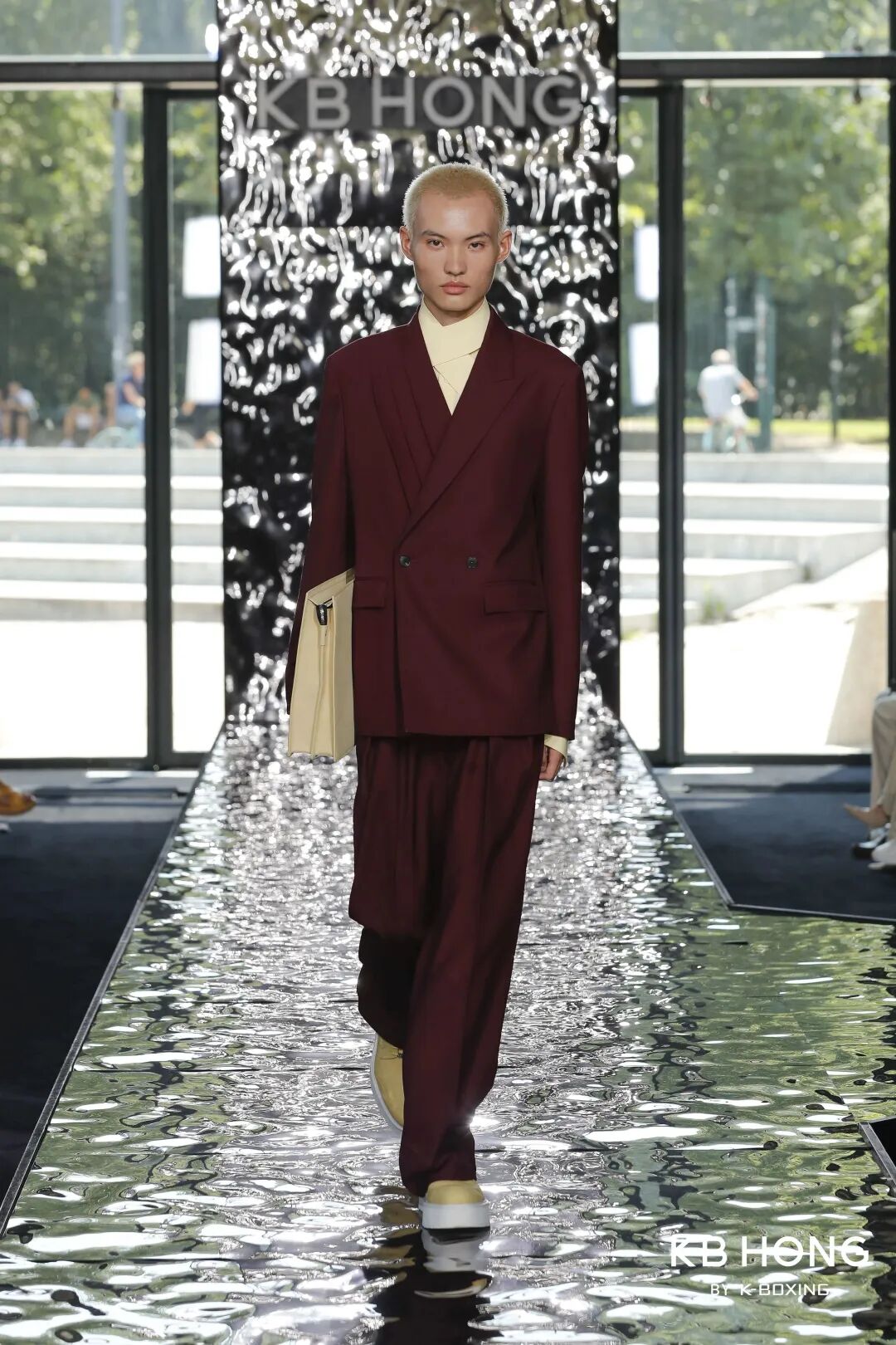 事实上,“美学水准”的不断攀升,只是劲霸留给公众的第一印象,近些年来,这家43年的本土男装已经默默脱胎换骨,已然成为在国际顶级时装秀场官方日程表中的一员,与阿玛尼、杰尼亚同日,且前后同台走秀。从2020年开始,它已经连续四年五次受邀走上米兰时装周的官方日程,特别是今年,劲霸男装携高端系列KB HONG半年内连续2次受邀登陆以评审苛刻著称的米兰时装周官方日程,实力不容小觑。那么,是什么原因让它如此坚持地做这件事呢?