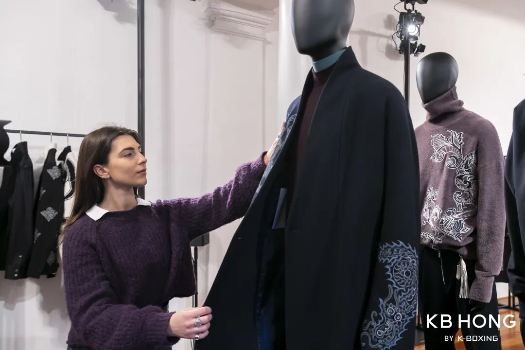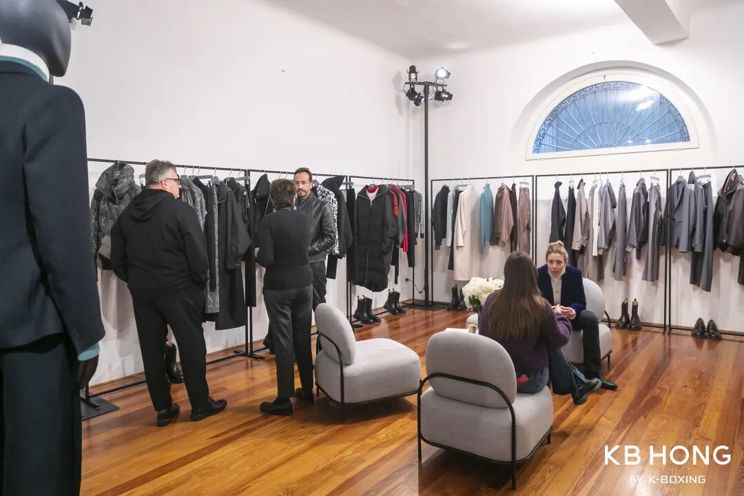 “四大时装周的水平不⼀,例如纽约时装周就比较容易上,而米兰时装周在疫情后反而变得更难,他们不会因为能赚钱而接纳更多品牌。”据常驻米兰的中国时尚从业人士Nana介绍,能进米兰时装周的难度之大,是四大世界时装周之最,事实上,每年的米兰时装周都会收到许多国内品牌的申请,“但最终能在官方日程里走秀的凤毛麟角。砸钱也许有用,但最起作用的可能是将钱砸到产品端。”Nana的意思很明确,如今不再是那个砸钱就能进军海外的年代了,只有真正的好产品,才能征服世界。而“好产品”背后必然是硬实力的体现,如何持续提供能够打动人的好品质?如何持续做出卓越的创意?都是考验品牌的硬指标。与时装秀上那些常年保持“仙气”的设计师款不同,回到国内,劲霸面对的可是世界上最理性、务实的一群中国男人。即便他们现在也想要“好看”了,也并不等于他们放弃了“好穿”这一刚需。“其实男性消费整体来讲比女性消费更偏实用主义。”洪伯明坦言,审美觉醒的中国男人,依然是既要又要。众所周知,劲霸男装诞生于1980年,创始人洪肇明以两扇门板做裁床缝制出劲霸历史上的第一件茄克,至今走过了整整43年。40多年的积累,劲霸在创意设计、版型面料、工艺研发等多方面均保持了中国高端商务休闲男装综合领先的地位,在业内和消费者群体中树立了高品质、高标准的形象和口碑。为了能把一件茄克做好,劲霸男装这些年在产品研发上做了许多努力。除了在版型上的优势之外,在面辅料、工艺和其他细节上,更能于无声处分高下。就拿这次“传统咏赞词”时装秀上出现的秀款来说,在面料上,用了羊毛、丝绸、缎面棉等意大利进口高级材质,结合东方美学的当代设计,让衣服显得优雅、精致且不失高端感。众所周知,服装行业的供应链体系现在已经非常成熟和发达了,行业格局已定,一般一些高端的面料,只有特定的工厂才能生产,而且每年产量就这么多,给这家做就可能没办法给那家做了,很多都是专属定制的。KB HONG SS24秀款中国元素:写意龙纹、编织工艺工艺上,这次巧妙地使用了传统的编织工艺,用横竖独立的皮条或牛仔布条通过全手工编织成衣,让编织工艺的纹路既是茄克的“骨架”,又成为茄克的花纹,体现了许多精巧的构思。另外,把中国传统服饰的宽松廓形与传统正装的细节设计相结合,并在意大利男装的精致工艺下,不仅视觉设计上将东方美学与意式优雅充分融合,更为行业和消费者展示了,如何在男装工艺上,做到古典性与现代性的融合。衣服上的细节譬如辅料,劲霸也花了不少功夫。就拿拉链举例,品牌内部负责采购拉链的部门甚至要密切关注国际铜价的情况,就是因为劲霸衣服上的拉链,不是从外面采买的大路货,而是自己购买来原料,足料生产的。并且,根据不同款式、不同面料,设计师会配不同的拉链。譬如一件man一点的茄克,就会搭配得更有粗粝感;温润风格的就会选择更丝滑、更有触感的材质。就是在这些大大小小的细节上的足够用心,才能始终保持好品质,这不仅是“中国茄克品类冠军”这一称号背后的硬实力体现,更是能够在米兰时装周严格的筛选标准下,依然能够频频受邀的根本原因。如果要问当今世界最好的男装在哪里,答案一定是意大利,而扎根于意大利的米兰时装周,成为世界男装设计的一座高峰。去米兰参加一场时装秀,对一个本土男装品牌来说,背后有着太多深意。最重要的就是使命感,“世界的时尚舞台不能没有中国力量。”洪伯明在谈到为何连续4年坚持5次在米兰做时装秀的初心时,展示出了一种舍我其谁、勇攀高峰的勇气与果敢,表达了他对于肩负起国货品牌走向世界的责任感和使命感。2021年,劲霸男装成为首个登上长城的中国男装品牌,发布“高端新国货”战略,并且自信发声“中国茄克 劲霸制造”,一是自身品牌在41年发展积淀中,确实也走到了集中爆发的时刻,二是国家倡导和市场需求高涨双重背景下的趋势所向。既然选择走向国际舞台与世界顶级设计同台,就必须在战略层面高度重视。为此,劲霸给自己定下了三个要求:首先是连续性,包括持续提升的设计能力、源源不断的灵感源等,不能昙花一现。在全球疫情反复延宕的艰难背景下,从2020年的“门见万象”,2021年的“昇 · 音”,2022年的“晞寄东方,劲望世界”的“晞 · 望”,到2023年年初的“玉礼四方”,再到此次的“传统咏赞词”,劲霸4年来坚持5次登上米兰时装周,持续输出“东方美学”价值观主题,确实堪当走出国门亮相世界舞台的国货之光。其次,产品的品质必须过硬,必须足够能打,才能有资格在国际上持续露出。最后,也是最重要的一点,既然决定走出国门,就不能做做噱头、镀镀金就结束了,必须真正对产品有反思迭代,对市场有观察,对行业格局有思考。为此,劲霸2023年1月在米兰设立了线下showroom,展陈KB HONG 4年来的秀款、零售产品,6月则进驻意大利知名Garage Milano showroom,邀请买手、媒体、KOL等参观,聆听市场向的真实反馈,这也体现了一个品牌在面对更广阔的海外市场、国际市场时,更加虚心和真诚的态度。2023年1月米兰时装周,KB HONG SHOWROOM时装秀发展到今天,已经不单单是时尚界的行业盛会了,“有必要让公众了解秀场的意义。”洪伯明坦言,一直以来,时装秀在公众心目中的印象就是先锋、潮流、时尚,说白了高高在上且脱离大众。其实,很多优秀的
