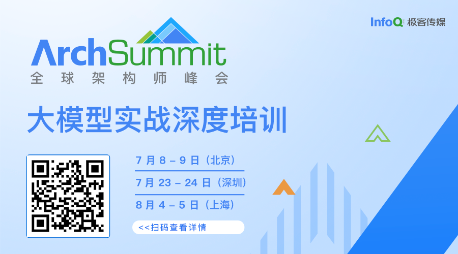 7 月 -8 月,我们策划了 3 场线下深度培训,邀请业界资深专家陈旸博士,和范煜分享如何动手构建大模型并使用大模型开发应用。还邀请了去哪儿网王植萌、京东金融康阳分别从领域驱动设计和系统高可用性方面,深度解读这些技术从设计到落地的细节。