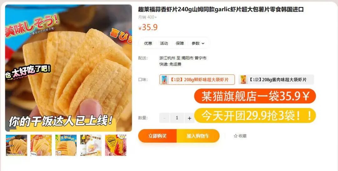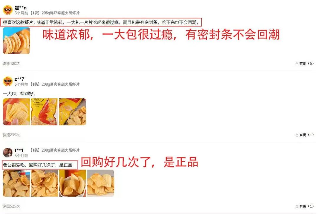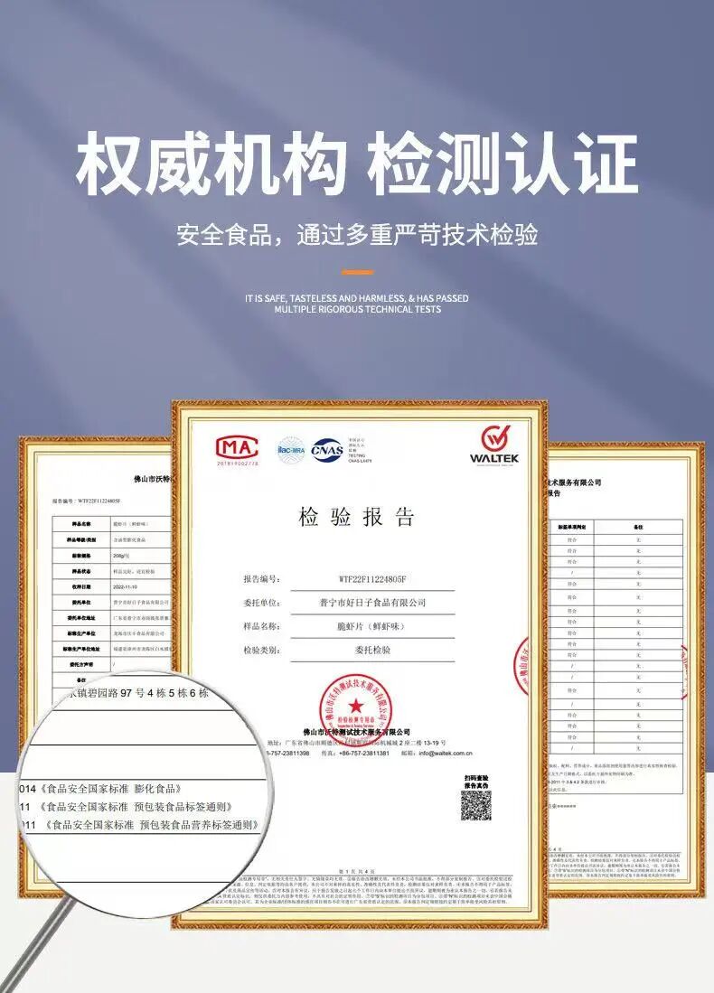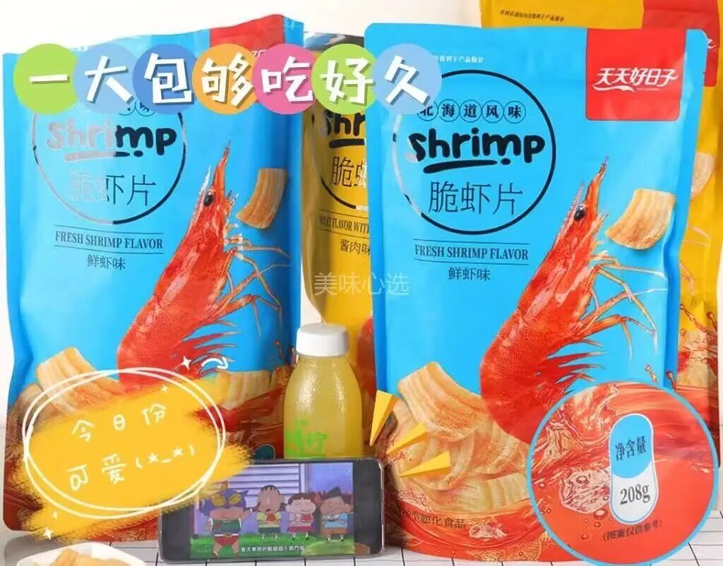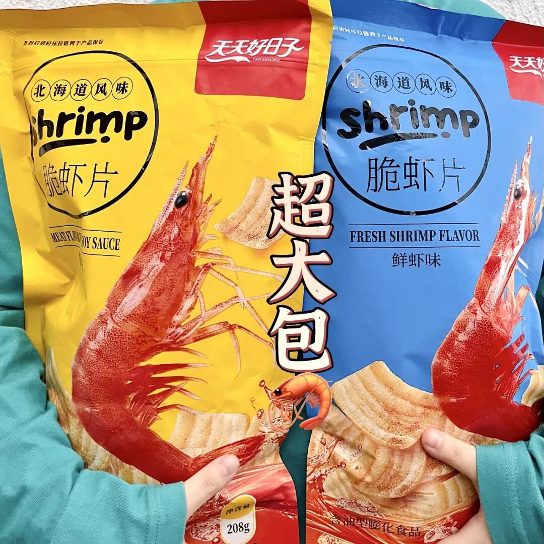 【品牌直发】 一年狂卖58万包+的【北海道风味脆虾片】超大包巨无霸虾片,超大包巨无霸虾片,断货王29.9三大袋,你得抱着吃,追剧零食推荐!别的不敢说,就是🦐虾多一袋208g大分量“抱抱袋”设计,贴心内置封条,吃不完还能密封保存,鲜香松脆,咸味刚刚好满满一大包,一包满足全家人!😋大口吃虾片的快乐又回来啦!别再吃油腻腻的鸡腿了,虾片它不香吗!这品质、这分量,旗舰店208g一袋就要卖你35.9!我们本身就担任着“普宁市休闲食品行业协会会长单位”连续十年广东省守合同重信用企业!大品牌,品质有保障,产品也是通过了专业的质检,全部符合食品安全国家标准!【限售区域】澳台,新疆,内蒙古,西藏、甘肃、青海、宁夏等偏远地区。(部分地区受疫情或灾害等影响停发,以实际出单为准,敬请谅解)1、收到后如有质量问题24小时之内带面单+产品照片联系客服进行赔付或者补发2、产品一旦发出后拒绝任何形式拒签,收到产品后当场验货,如出现问题,请及时拍照并与我们联系,我们会第一时间处理3、客户留地址 电话等信息导致货物不能正常送达均不在售后范围内4、产品已经发出的情况下,不可更改地址、不退货,下单前,一定要留对信息!!订单提交订单后不允许改地址!!!不能退款!发货和上传运单有24-48小时时差,没有运单/单号无物流 不代表没有发货。不支持7天无理由退货,杜绝拒收,不支持改地址,下单前核对好地址。产品问题,签收起24小时反馈解决,超时不负责