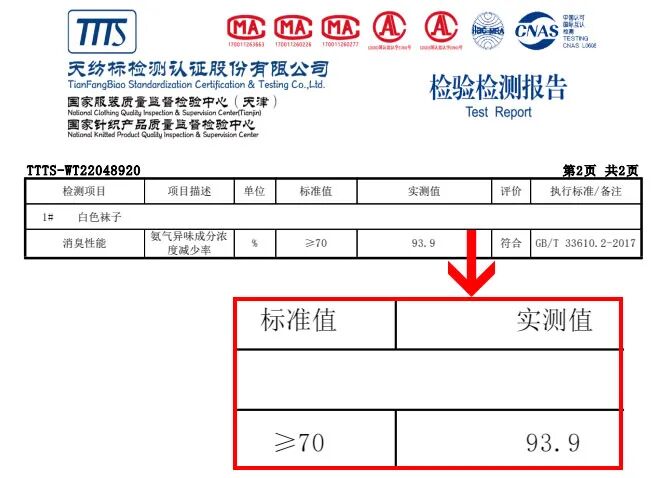 防臭的效果也经过中国认可国际互认的权威检测,实测值高达93.9 %,远超标准值的70%!!!品牌方还打出了“七天免洗”的标签,足以看出这双袜子的yi菌实力了,这就是对产品的自信~