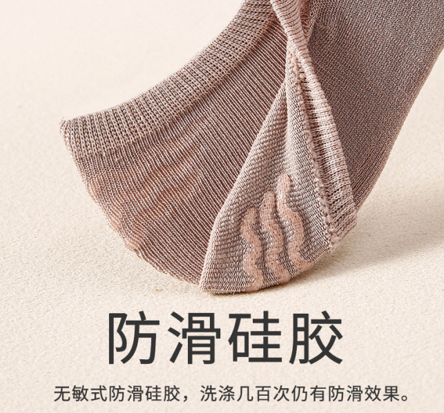 这种防滑硅胶经过上百次的洗涤测试,仍有防滑效果,有了它再也不怕袜子从脚后跟溜走了~