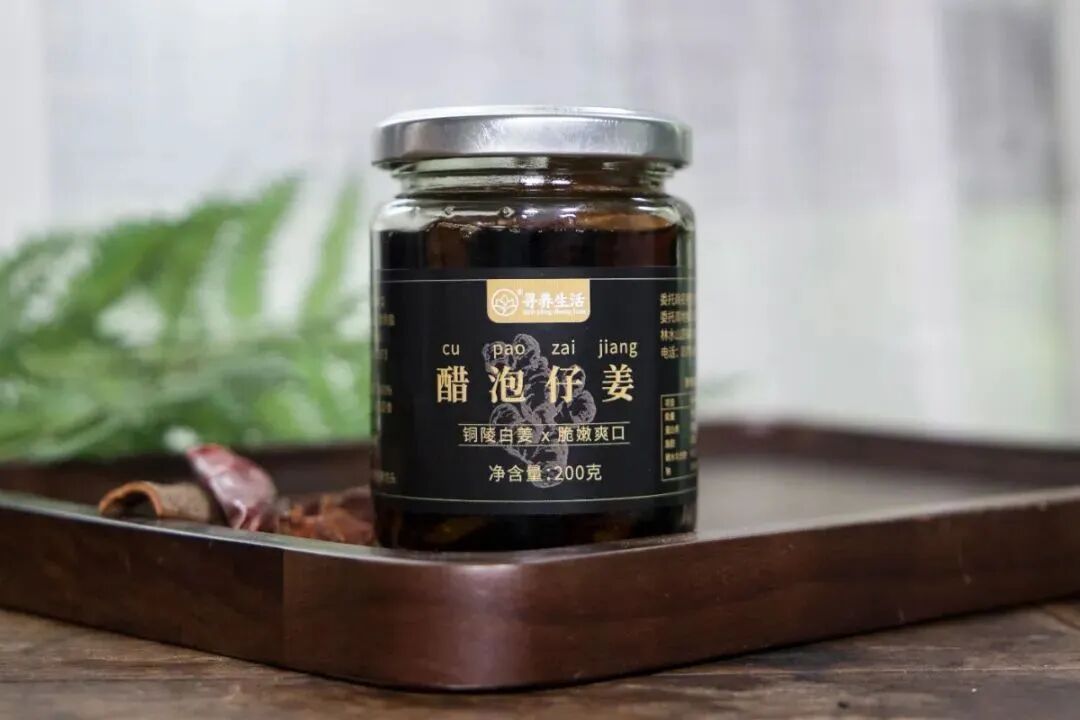 我们为此专门请了几十年经验的老师傅,选用上好铜陵白姜、陈年老醋,按照一定的比例,经过40天的浸泡发酵而成。