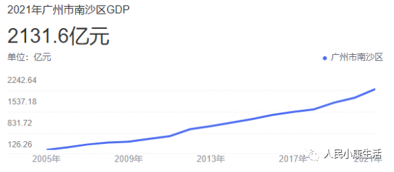 从2011年到2021年,广州市南沙区的GDP从576.2亿元暴增到2131.6亿元,十年间的涨幅达到了约369.9%,按照这个势头,等下一个十年结束或许南沙就能超过国内一大批城市了。