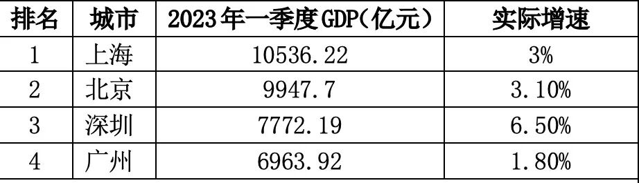 2023年一季度GDP排名,上海独占1万亿元头衔、北京距离1万亿元一步之遥、深圳以6.5%实际增速“狂飙”、广州重回中国第四城。至此,中国一线城市的经济格局,又从“上北深渝广”变为“上北深广”。上海证券报记者注意到,包括“上北深广”的20强城市,作为中国经济火车头,在2023年一季度的排位赛异常激烈。其中,中西部龙头城市表现亮眼,成都超苏州,西安连超济南、南通。视角转向东南沿海,长三角城市群再次发力。此次宁波超天津,排名第11位;而此前南京超天津,排名第10位。城市竞争,不进则退,前20强排位赛将越发激烈。而个人发展与城市息息相关,探究城市排名背后,产业变迁与时代潮流值得深思。