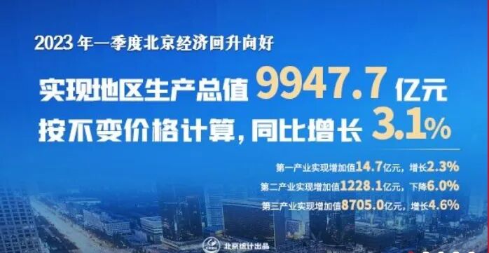 北京在2023年一季度,以9947.7亿元GDP排名第二,距离1万亿元仅一步之遥。