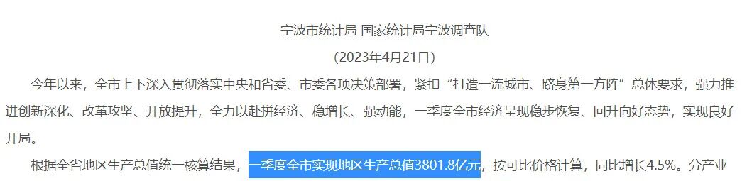 此前,南京超过天津,成为中国第十城。2023年第一季度GDP排名中,宁波以3801.8亿元超越天津3715.38亿元,排名升至第11位,仅次于南京,在此次20强排名中较为亮眼。