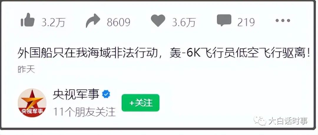 在布林肯离开北京后,中美之间的博弈,并没有出现缓和,反而有激化的态势。在谈的时候,双方的盘外招并不会停歇,反而还会更激烈。6月20日,我们全网宣传,空军航空兵某团飞行二大队获得“时代楷模”称号。那么这个空军航空兵某团飞行二大队,究竟是做了什么事迹,才获得如此高的殊荣呢?从公开报道信息里是说“该大队全面加强练兵备战,发扬斗争精神,敢于亮剑长空,圆满完成南海战巡、前出岛链、绕台岛飞行等多次重大任务,被誉为“奋飞新时代的空中铁拳”。然后昨天,则有更进一步的事迹说明,我觉得就差直说外方船只的名字了。比如,这个标题就直接写《外国船只在我海域非法行动,轰-6K飞行员低空飞行驱离》其中提到“在一次远海任务中,副大队长张成梁与战友驾机刚刚抵达预定空域,就发现几艘外方船只,在我海域内非法行动,机组当即申请下降高度进行驱离。”![]()