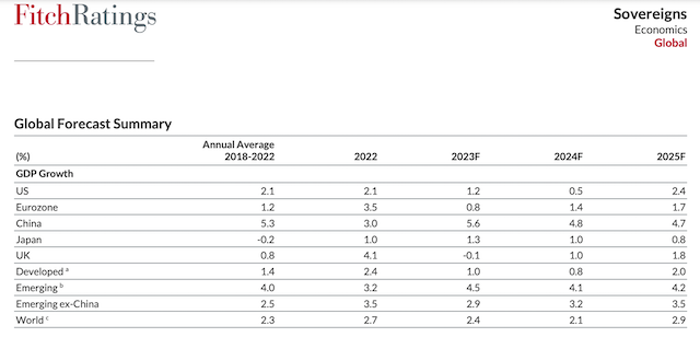 当地时间21日,惠誉评级发布最新《全球经济展望》,因近期全球经济呈现韧性,将2023年全球经济增速预期由3月时的2.0%上调0.4个百分点至2.4%。不过该机构认为,鉴于核心通胀居高不下,各央行将不得不在未来数月继续收紧货币政策,货币政策调整及其对经济的影响将更加旷日持久。惠誉的报告显示,今年,中国将成为全球主要经济体当中增速最快的国家,预计全年经济增速为5.6%,较3月时的预测值上调0.4个百分点。中国经济增速领跑