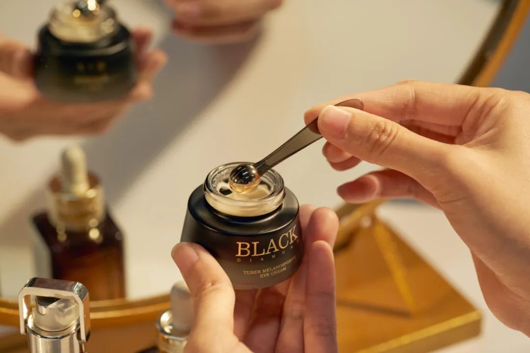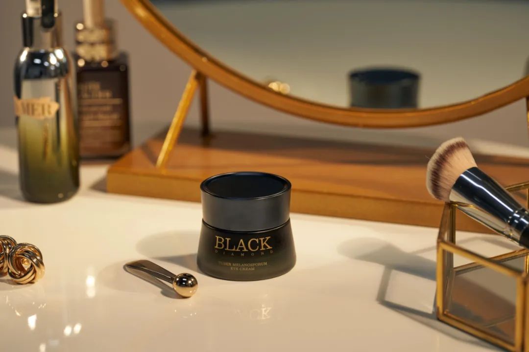 因为,人们终于找到了一种更有效、更安全的抗老成分,它就像一名医术超群的医生,能为氧化受损的细胞展开一场“修补手术”,改善眼纹和松弛下垂。“打个不恰当的比喻,如果你30岁时开始大量用黑松露眼霜,同龄人已经长了眼纹看着像40岁了,而你却看起来好像还停留在31岁。”要知道,黑松露对生长环境很挑剔,阳光、水分、土壤酸碱度稍微有变化就无法生长,全球只有在法国、意大利等少数地方的森林深处才能找到质量上乘的黑松露。而且它们目前还不能大规模人工栽培,年产量稀少,素有“黑钻石”之称,在价格方面自然是水涨船高。因此,它一出现,就立刻被大牌盯上了,像你知道的*诗兰黛就专门用它做了一条高端的抗老产品线,明星、贵妇都抢疯了。▲图片来源:*诗兰黛官网,截取自2022.06.10从功效上来说,黑钻松露可以说是很优秀的成分了!只是,它也有一个不易解决的缺点:不好吸收。跟所有昂贵的植萃(人参、灵芝)一样,单纯提取的黑钻松露精粹吸收有限,可能你涂上眼,30%被吸收了,另外70%都被浪费了。这个难题几乎困扰了市面上所有的厂家和品牌,少有几个解决了这个问题的,基本都是舍得砸钱研发的大牌。这时,你可能会问:“除了大牌,有没有其他品牌解决了这个难题的?”