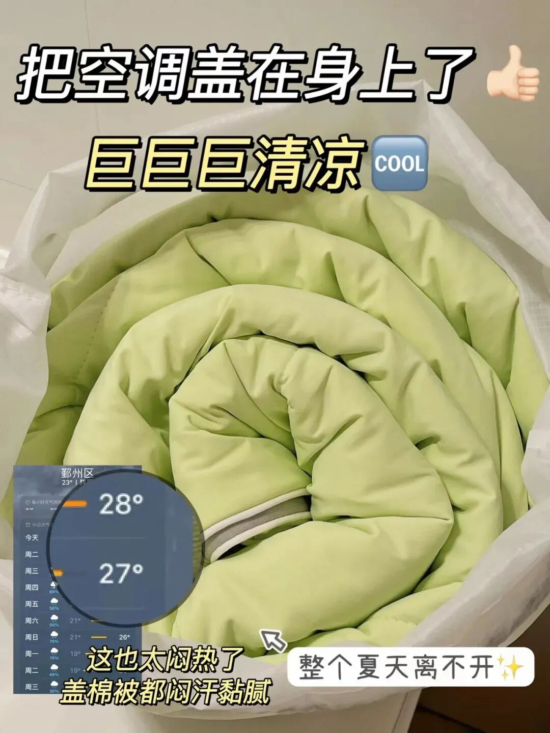 盖在身上,能抚平夏日燥热,带走多余热量,从脖子到脚趾头都是凉快的!
