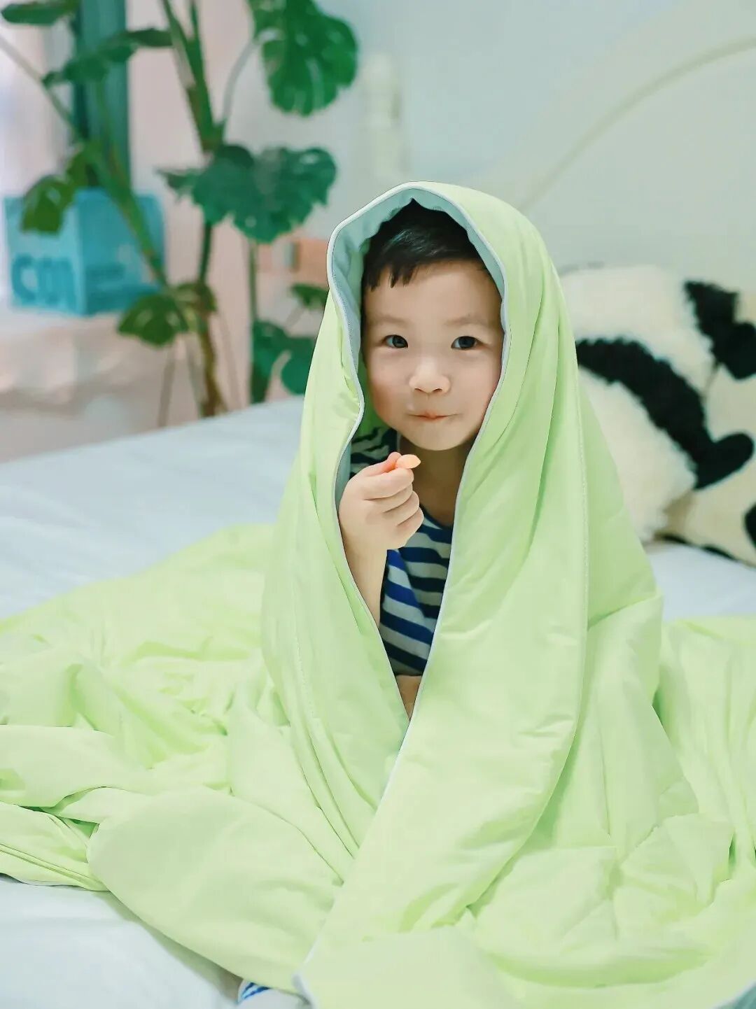 普通夏凉被,刚开始盖在身上凉快,但经常睡到半夜就被热醒,孩子更是频繁蹬被子!