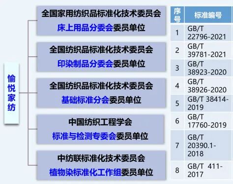 愉悦家纺参与制修订20多项国家和行业标准,推动了纺织行业标准发展和质量提升~