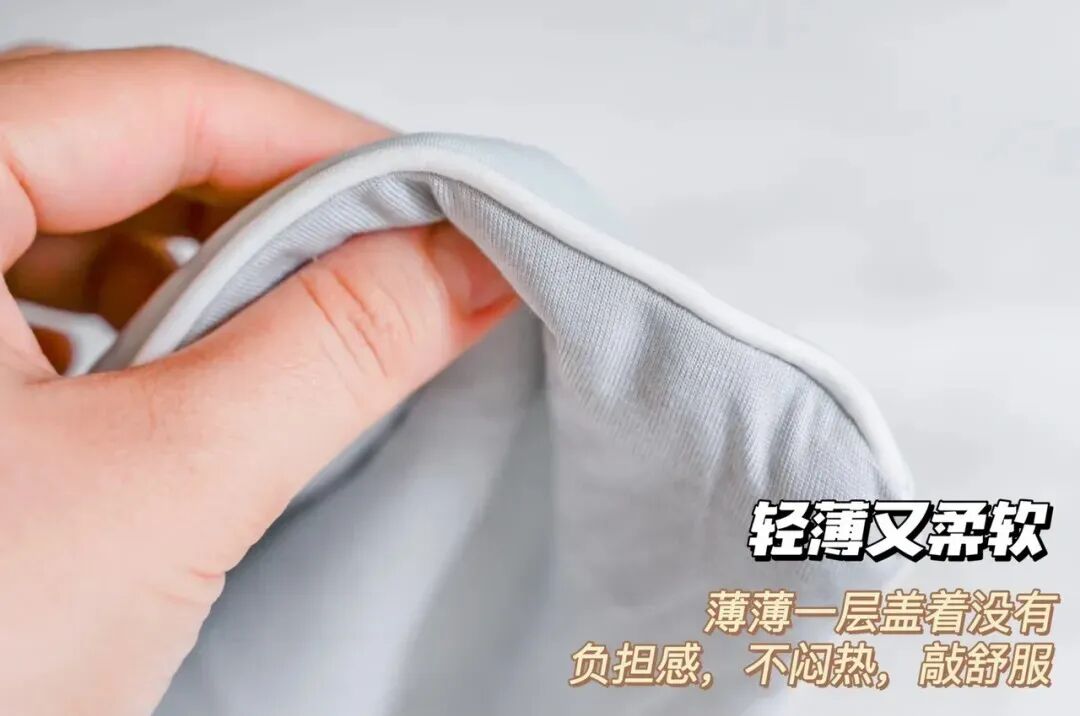 冷感纤维物理降温,一触即凉,但不是冰凉的感觉,老人孩子盖也不会担心受冻~