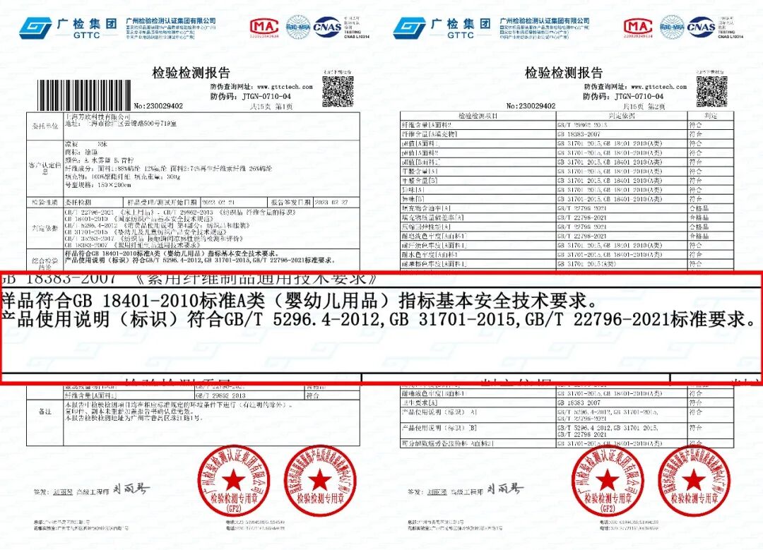 是孩子也可以放心裸睡的面料,通过相关质检更放心。