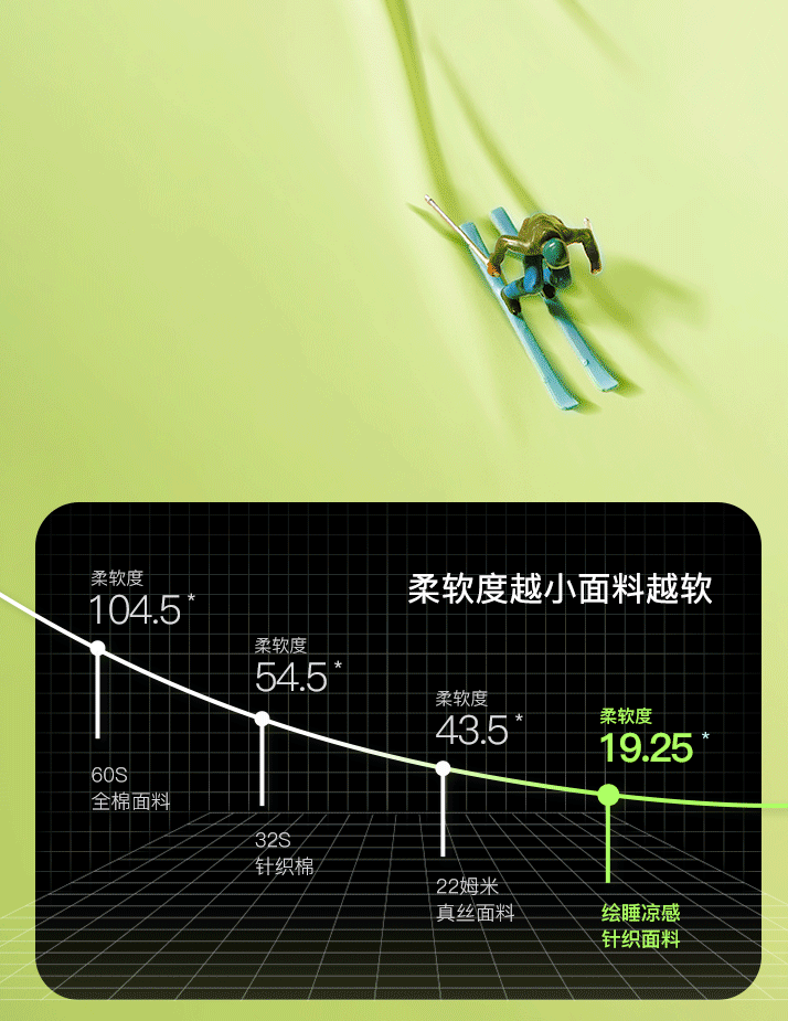面料柔软度低于20mN,比真丝还软,尽享丝滑。(mN是柔软度,柔软度越小,面料越软~)