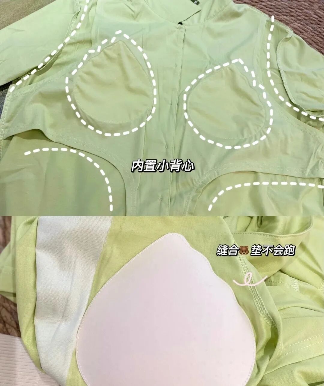 半练这款自带bra的半练家居服,就是来拯救我们的哇。 内置一体式胸垫,内隐防凸,不跑杯不压胸,舒服0束缚,拒绝尴尬。 讲真,市面上也有不少跟风做bra-in家居服的品牌,其实就是简单粗暴加了杯垫,谁穿谁尴尬! 半练却是实打实做过市场研究的,收集了几百位女性的家居服消费习惯,不断反馈改进,才有了这人见人夸的自带胸垫家居服! 呐,直接给你们看看胸垫的设计:直接缝在衣服内里,如果不是翻过来看,根本感受不到它的存在: 正面看更是了无痕迹,不像有些家居服,有胸垫但不仅不能防凸,明显的胸垫痕迹还弄得更尴尬了。 流线羽毛杯型结合了三角杯、圆杯的优势,不管大胸、小胸都能稳稳当当保护住! 四周厚度0.1cm,中间厚度0.3cm,穿起来显得胸型很好也不会有尴尬点~ 排汗透气更胜一筹,根据品牌实验室测试,它的透气率是210mm/s,是普通杯垫的1.5倍,夏天穿也很凉快。 薄薄的透气不闷,也不会压胸毫无束缚感,有时候直接穿着睡觉也没有觉得不舒服。 一体式设计,可以直接机洗,不用担心变形、脱杯,不跑棉不起球,真的爱了! 穿上它,出门拿快递再也不用特意去换衣服,在家的时候朋友来也不尴尬,不知道方便了多少! -点击下图立即购买-