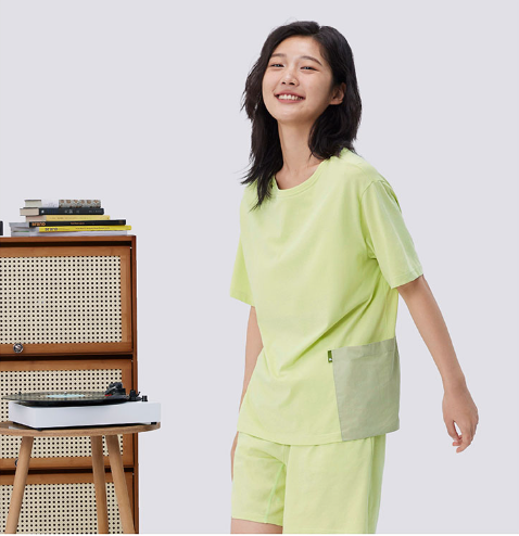 不仅设计棒,面料也特别舒服。 清爽凉感面料,拿在手里丝滑手软,夏天穿凉凉的也不会闷汗。 面料用的是“CoolLoop”凉感技术,在高含量天然棉基础上,增加矿物质凉感纤维,上身秒降温! 品牌方实测,接触凉感达到0.27,冰冰凉凉很惬意~ 拿在手上,丝滑柔软的质感像是随时要从手上滑下去。 当身体滑进衣服的那一刻,整个人就如同被云朵包裹一样舒服,紧绷的身心仿佛瞬间解放了~ 这种混纺面料也更加抗皱、耐穿。 不管怎么翻身折腾,衣服还是垂顺的;窝在沙发上一整天,衣服也不会皱皱巴巴,穿出门也不会质感减分。 下班回家洗完澡套上它,吃着西瓜宅在家里追剧,别提多爽了,一秒还魂! -点击下图立即购买-