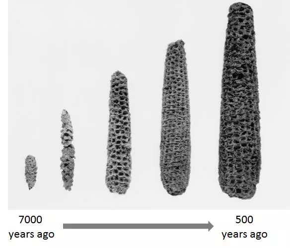 世界各地的考古遗址种,早就出土了大量的古玉米证据,推导出了人类培育玉米的进化链。 ![]()