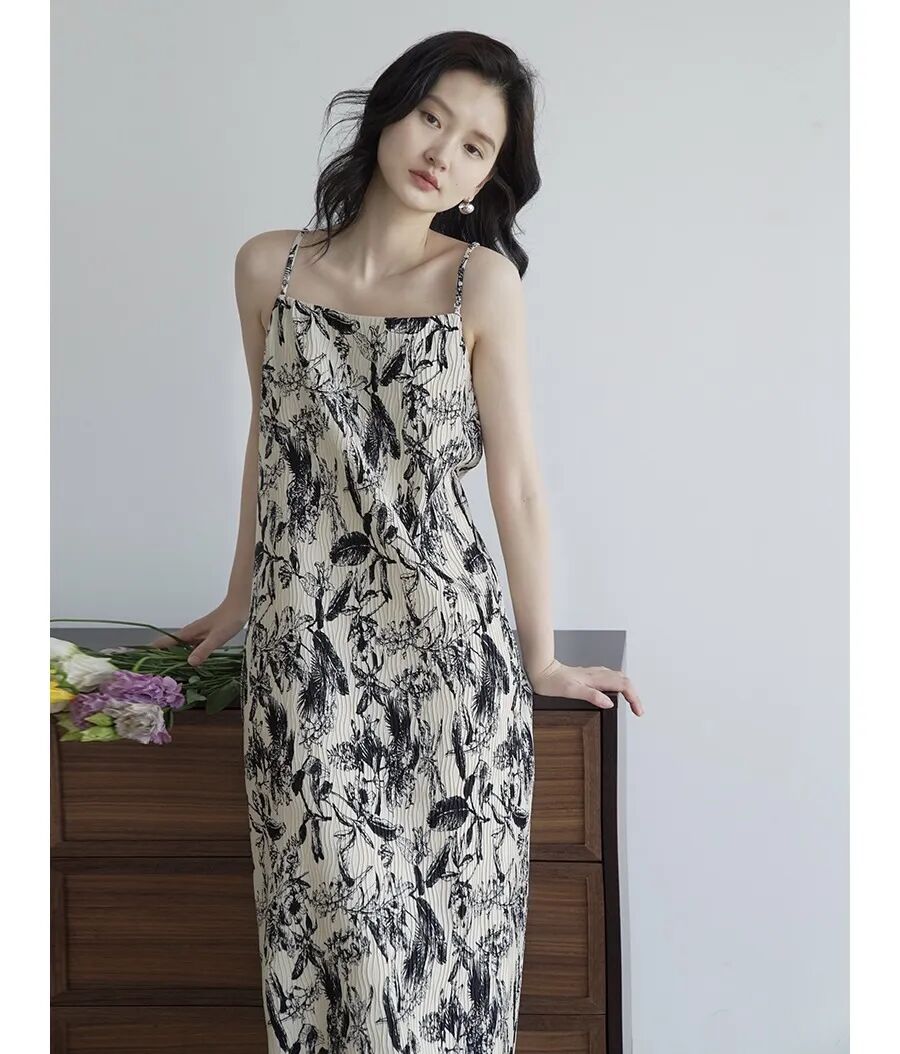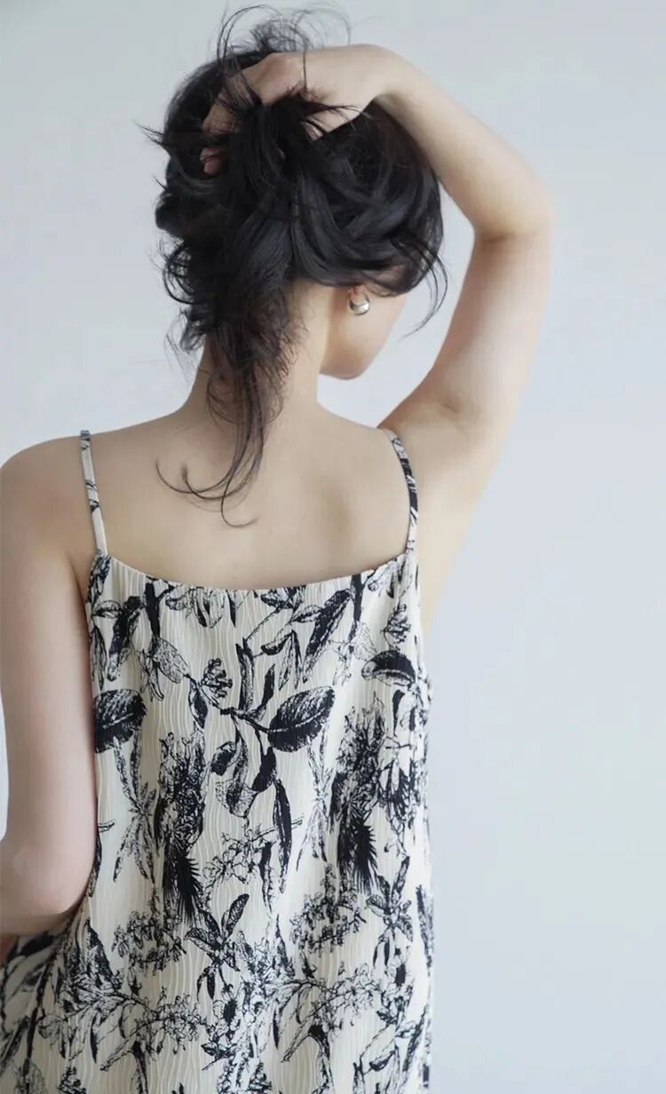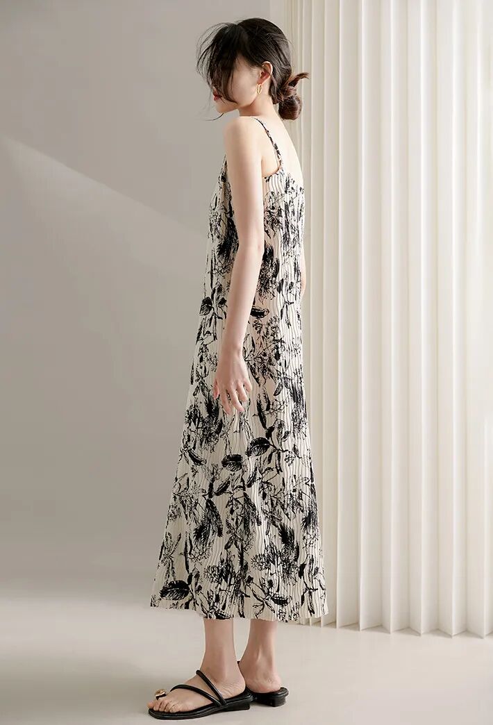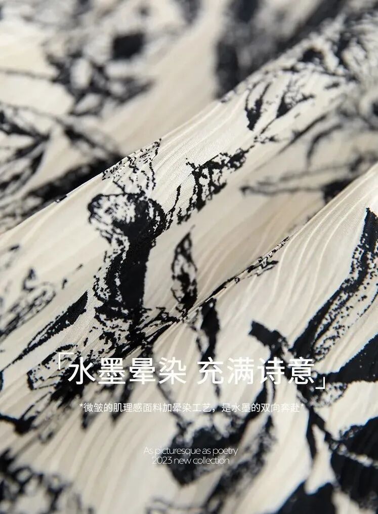 水墨纹理是东方代表的古典元素,素雅的晕染色彩简约又唯美,幽静气息顺着长裙飘荡,夏天穿再合适不过了。